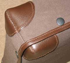 ends bound in leather. The case straps are fitted through hand stitched loops, on