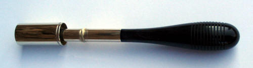 London pattern, Horn handle turnscrew. These turnscrews have hardened, hollow ground blades and are custom made to suit the screw slot size. For gunmakers, a trade name can be stamped into the blade. Also available in Ebony. |