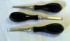 It is usual to have two or three turnscrews in a case to fit all of the screw sizes. This set is with polished, Buffalo horn handles. Also available in Ebony. |
