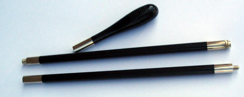 This two piece cleaning rod is made in Ebony and nickel silver.