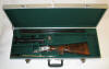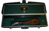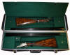 Aluminium flight case fitted for a pair of 28b Greener guns. The flap separates the two guns, which are held in place with leather wrist straps.